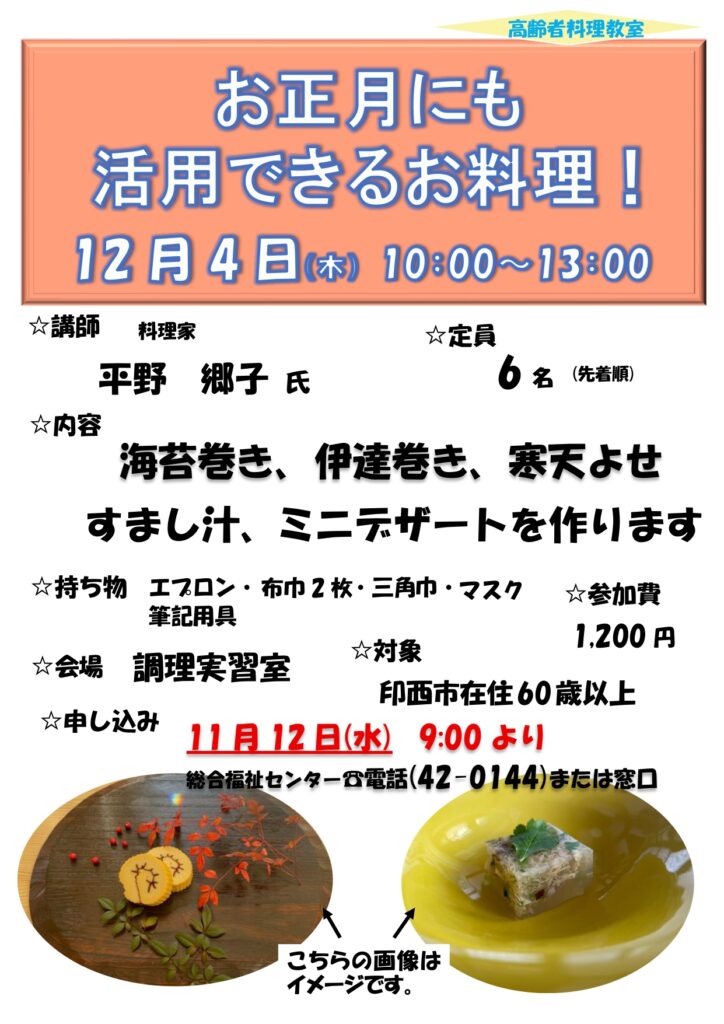高齢者料理教室 『お正月にも活用できるお料理!』