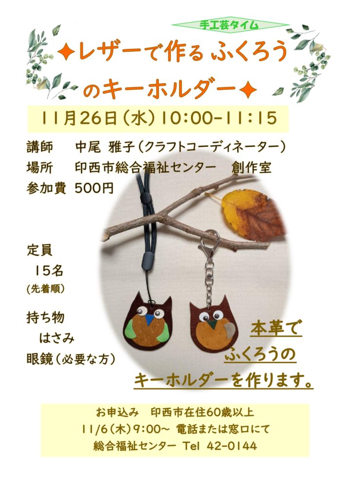 手工芸タイム 『レザーでつくるふくろうのキーホルダー』