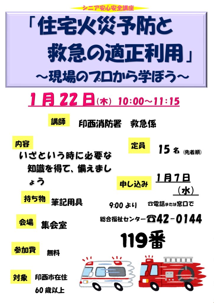 シニア安心安全「住宅火災予防と救急の適正利用」~現場のプロから学ぼう〜